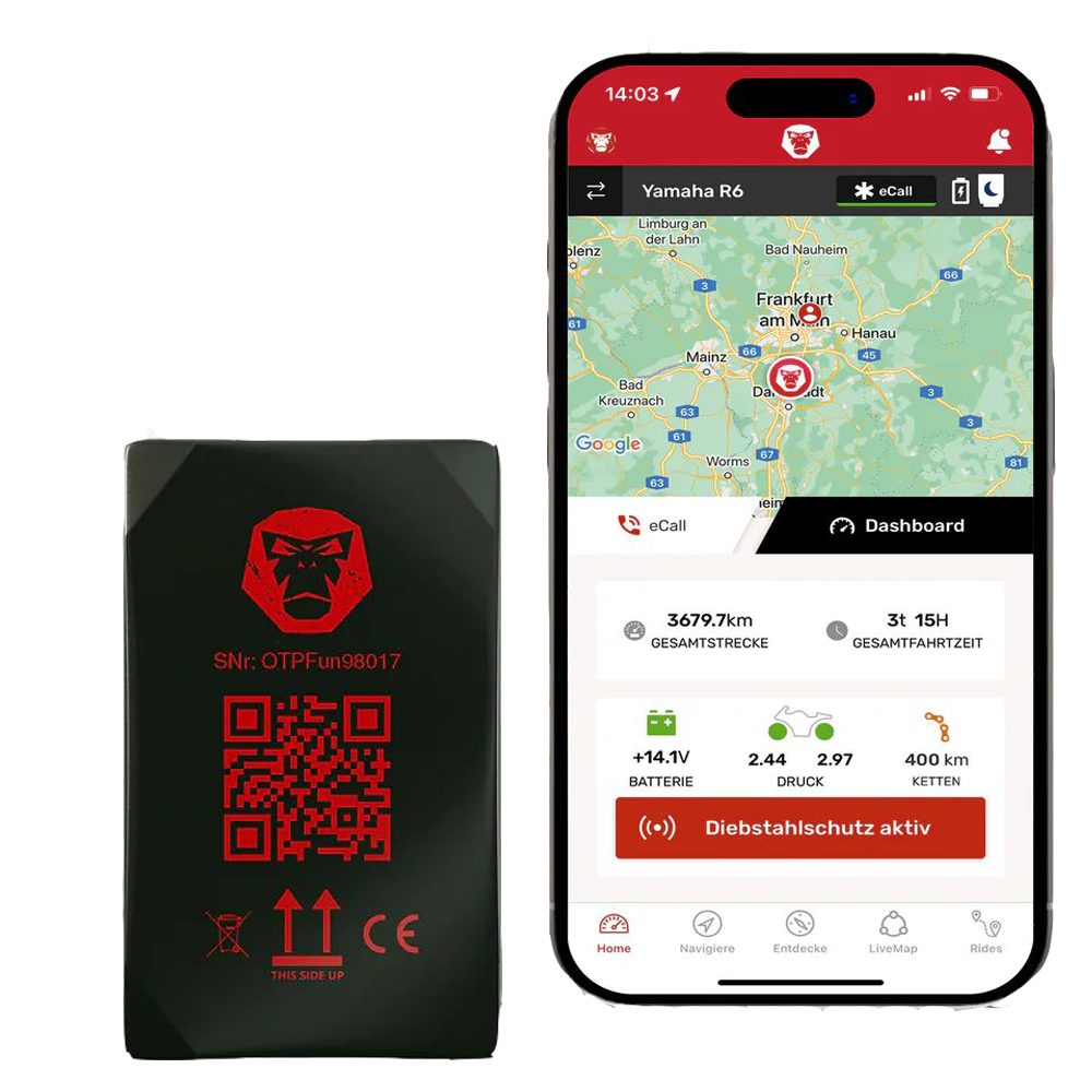 In Kombination mit dem WingMan-GPS-Modul wird dein Motorrad mit der App verbunden und bietet eine Vielzahl zusätzlicher Möglichkeiten. Eine einzigartige Kombination, speziell entwickelt für leidenschaftliche Motorradfahrer.